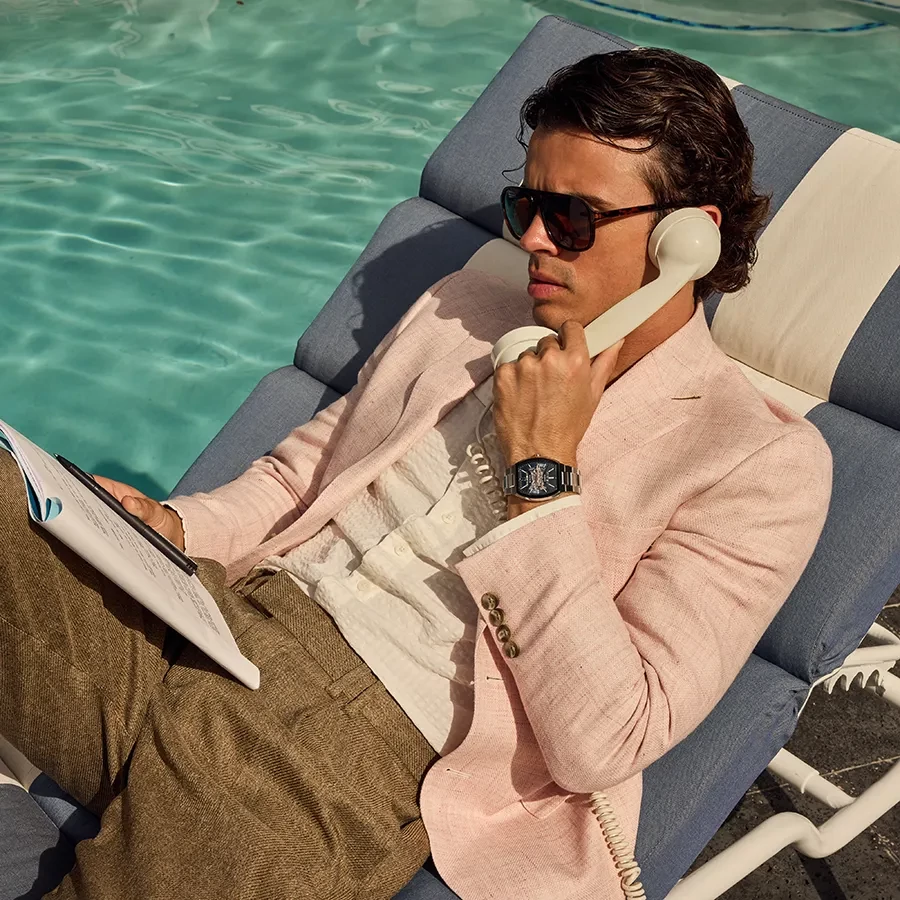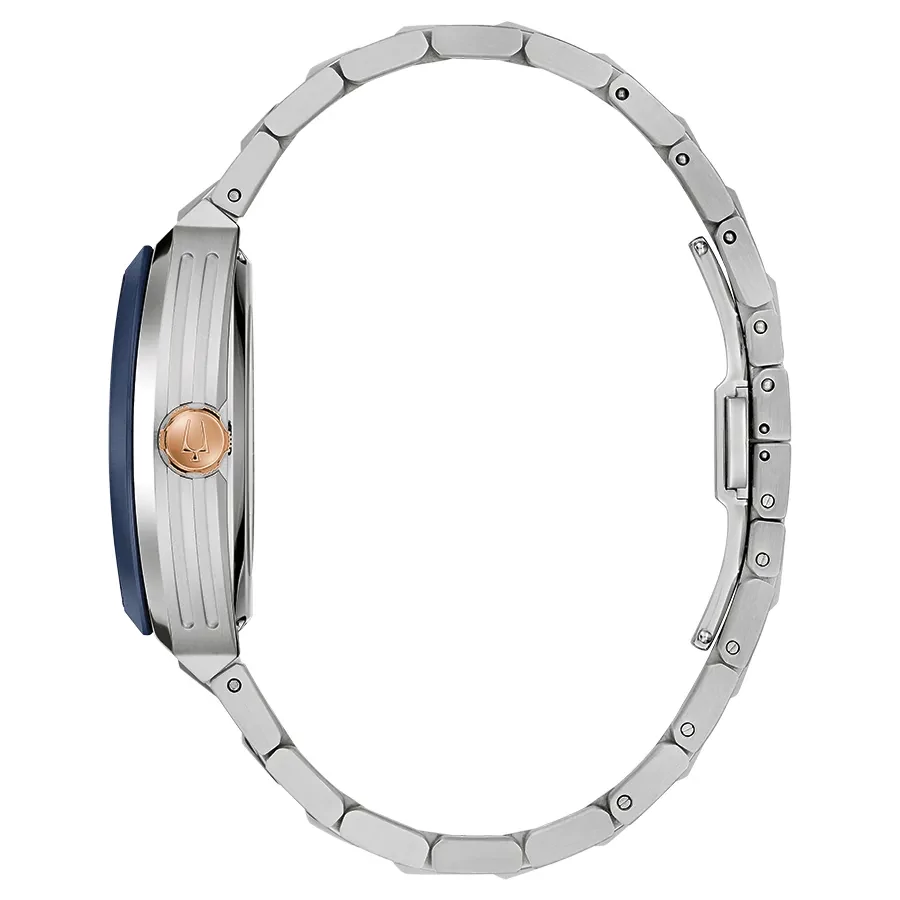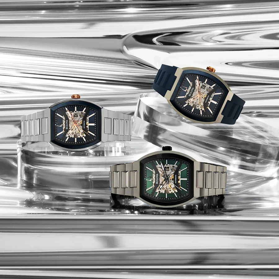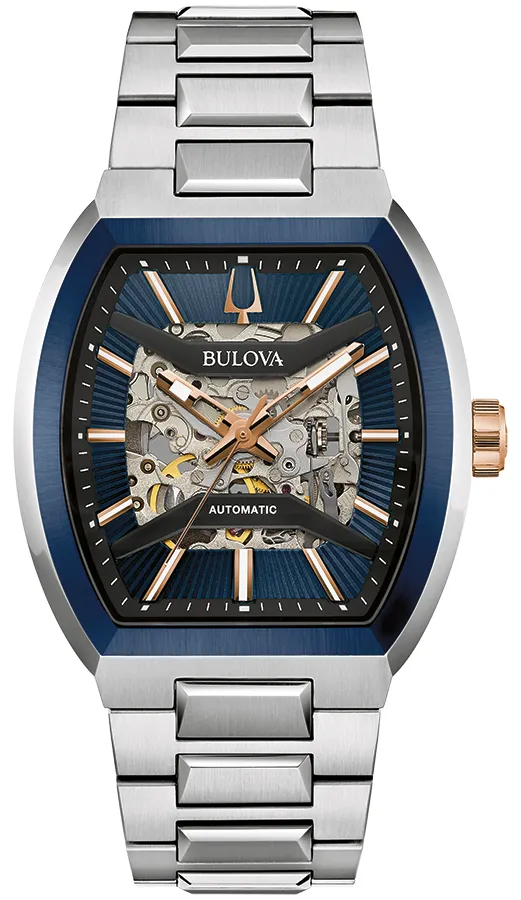 A BULOVA MAQUINA AVANT-GARDE 98A319 karóra 5 BAR nyomásig alapszinten vízálló, ezüstszínű nemesacél tokkal, domború tükröződésmentesített fokozottan karcálló zafír kristályüveggel, átlátszó hátlappal, ezüstszínű tömör szemekből álló acélcsattal, nyitáskönnyített pillangózáras csatközéppel készül. A mechanikus szerkezetet egy rugó működteti, melyet a kéz mozgása húz fel automatikusan. A megbízható működés eléréséhez kb. 8 óra aktív mozgásra van szükség.