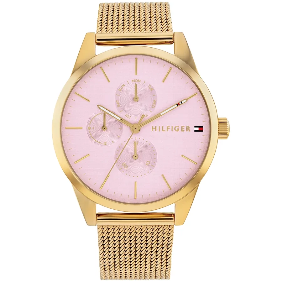 A TOMMY HILFIGER CAMILLE BTH17827693 karóra cseppálló, rozé ( rózsa arany ) színű nemesacél tokkal, edzett kristályüveggel, rozé ( rózsa arany ) színű acélcsattal, csúszkás csatközéppel készül. Az órát pontos quartz óraszerkezet működteti, mely elemmel működik (kb. 3 év az elem várható élettartama). Az óráról a pontos idő mellett leolvasható a nap, a nap neve és a 24-órás mutatóról a napszak is.