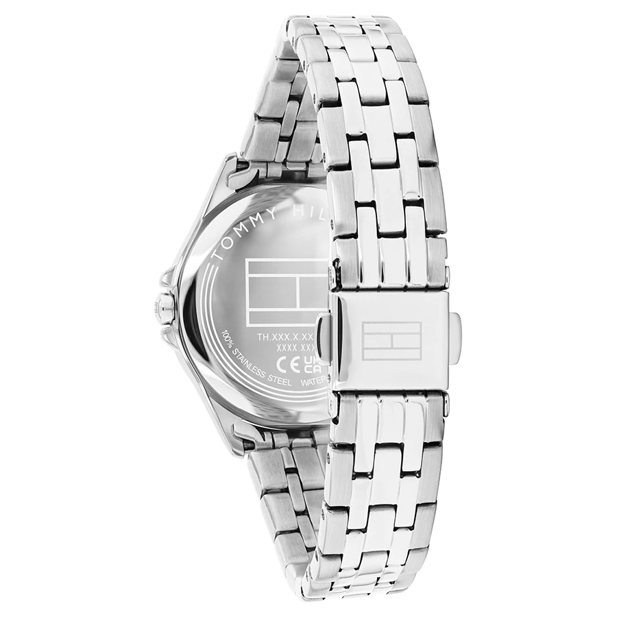 A TOMMY HILFIGER JADE BTH17828903 karóra cseppálló, ezüstszínű nemesacél tokkal, edzett kristályüveggel, ezüstszínű acélcsattal, nyitáskönnyített csatközéppel készül. Az órát pontos quartz óraszerkezet működteti, mely elemmel működik (kb. 3 év az elem várható élettartama).