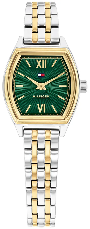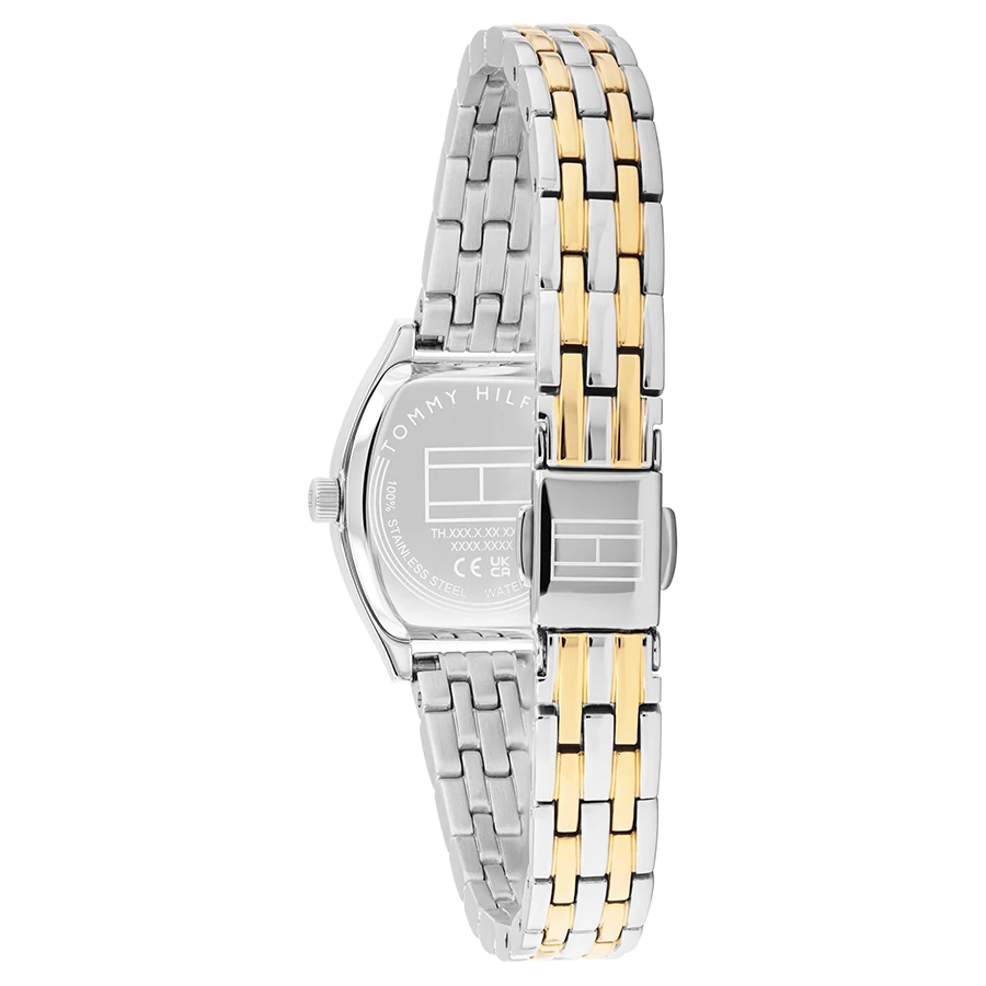 A TOMMY HILFIGER NORAH BTH17829073 karóra cseppálló, bicolor ( többszínű ) nemesacél tokkal, edzett kristályüveggel, bicolor ( többszínű ) acélcsattal, nyitáskönnyített csatközéppel készül. Az órát pontos quartz óraszerkezet működteti, mely elemmel működik (kb. 3 év az elem várható élettartama).