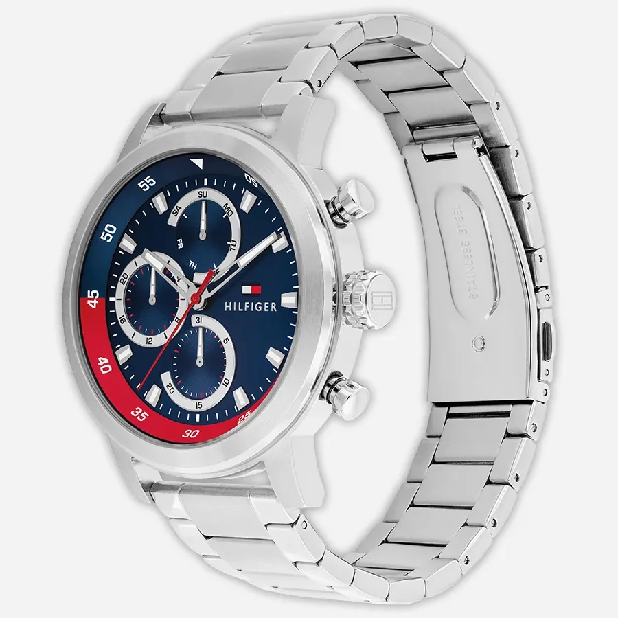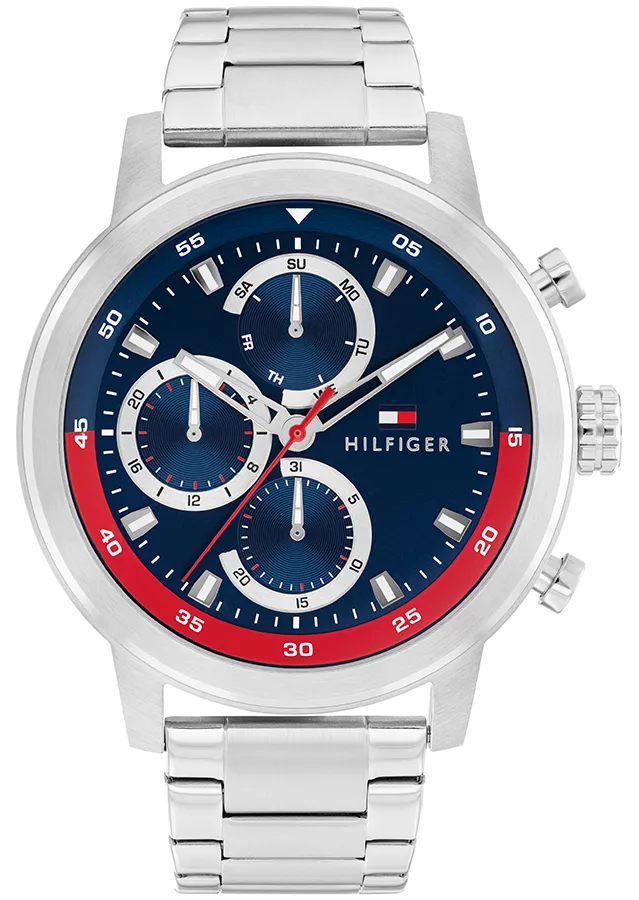 A TOMMY HILFIGER ROCKY BTH17921793 karóra 5 BAR nyomásig alapszinten vízálló, ezüstszínű nemesacél tokkal, edzett kristályüveggel, ezüstszínű acélcsattal, nyitáskönnyített csatközéppel készül. Az órát pontos quartz óraszerkezet működteti, mely elemmel működik (kb. 3 év az elem várható élettartama). Az óráról a pontos idő mellett leolvasható a nap, a nap neve és a 24-órás mutatóról a napszak is.