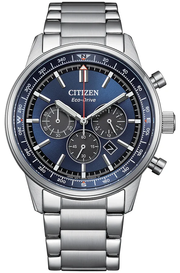 A CITIZEN CHRONO CA4720-52L karóra 10 BAR nyomásig fokozottan vízálló, ezüstszínű nemesacél tokkal, edzett kristályüveggel, menetes hátlappal, ezüstszínű acélcsattal, nyitáskönnyített csatközéppel készül. Az órát az Eco-Drive rendszernek köszönhetően kizárólag a fényből nyert energia működteti. Nyáron elég 1 nap "napozás" és a működését biztosító kondenzátor feltöltődik. A teljesen feltöltött kondenzátorral kb. 8 hónapig bírja, akár korom sötétben is. Az óráról a pontos idő mellett leolvasható a nap is. 1/5 másodperces mérési egységű stoppert használhat maximum 60 perc mérési idővel.