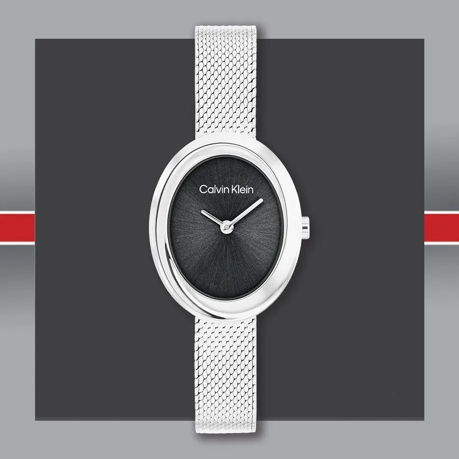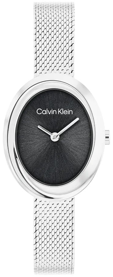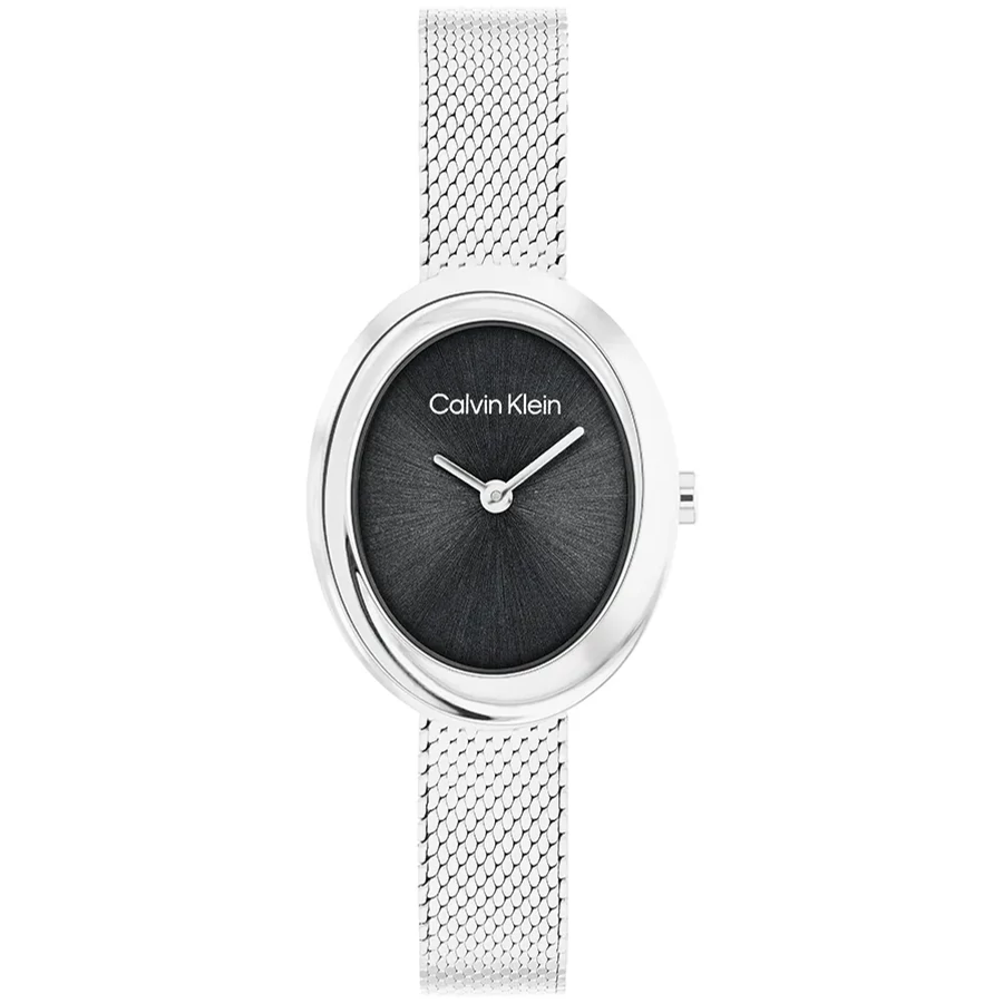A CALVIN KLEIN TWISTED BEZEL CK25100151 karóra cseppálló, ezüstszínű nemesacél tokkal, edzett kristályüveggel, fekete színű acélcsattal, csúszkás csatközéppel készül. Az órát pontos quartz óraszerkezet működteti, mely elemmel működik (kb. 3 év az elem várható élettartama).