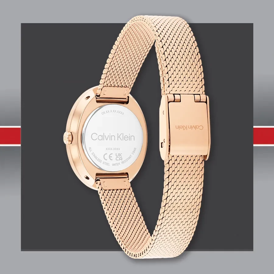 A CALVIN KLEIN TWISTED BEZEL CK25100153 karóra cseppálló, rozé ( rózsa arany ) színű nemesacél tokkal, edzett kristályüveggel, rozé ( rózsa arany ) színű valódi bőrszíjjal készül. Az órát pontos quartz óraszerkezet működteti, mely elemmel működik (kb. 3 év az elem várható élettartama).