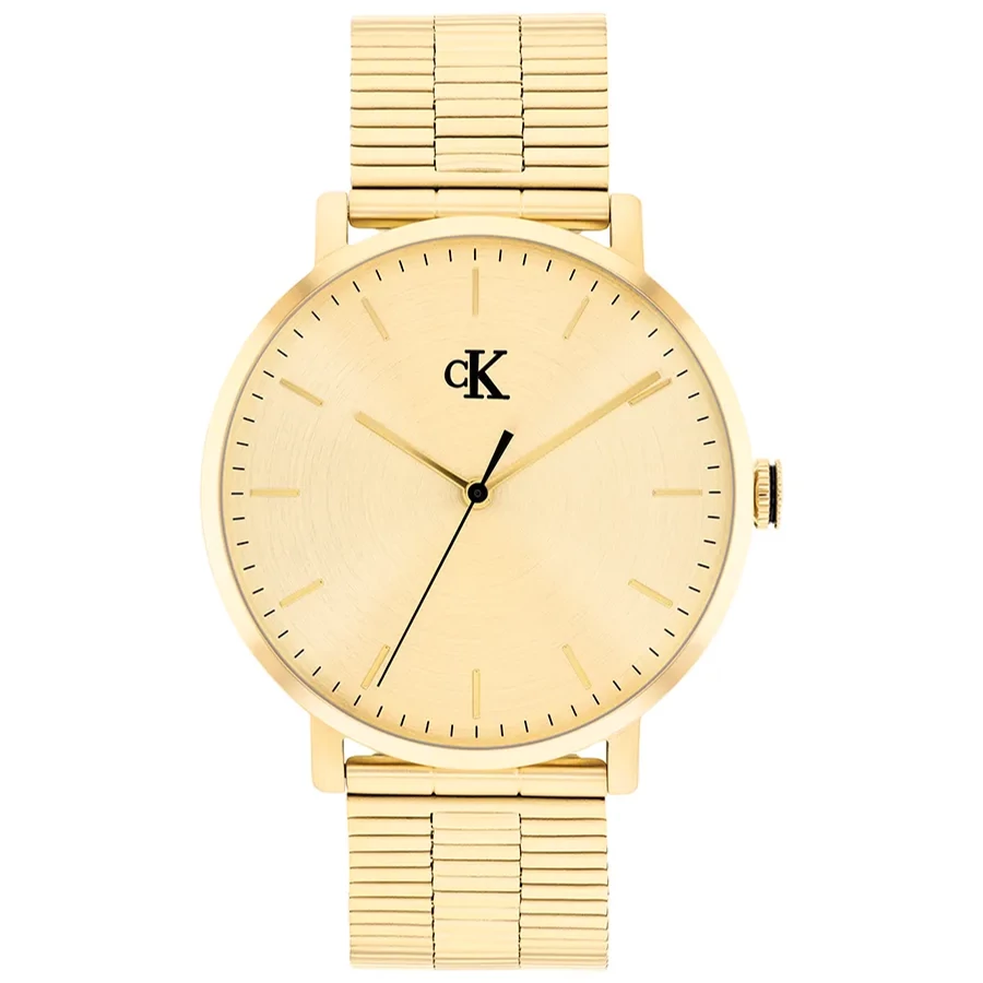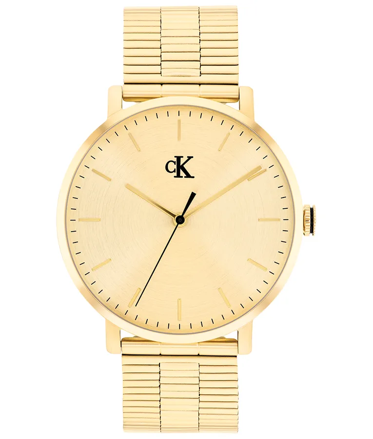 A CALVIN KLEIN CK REAL CK25200549 karóra cseppálló, aranyszínű nemesacél tokkal, edzett kristályüveggel, aranyszínű tömör szemekből álló acélcsattal, nyitáskönnyített csatközéppel készül. Az órát pontos quartz óraszerkezet működteti, mely elemmel működik (kb. 3 év az elem várható élettartama).