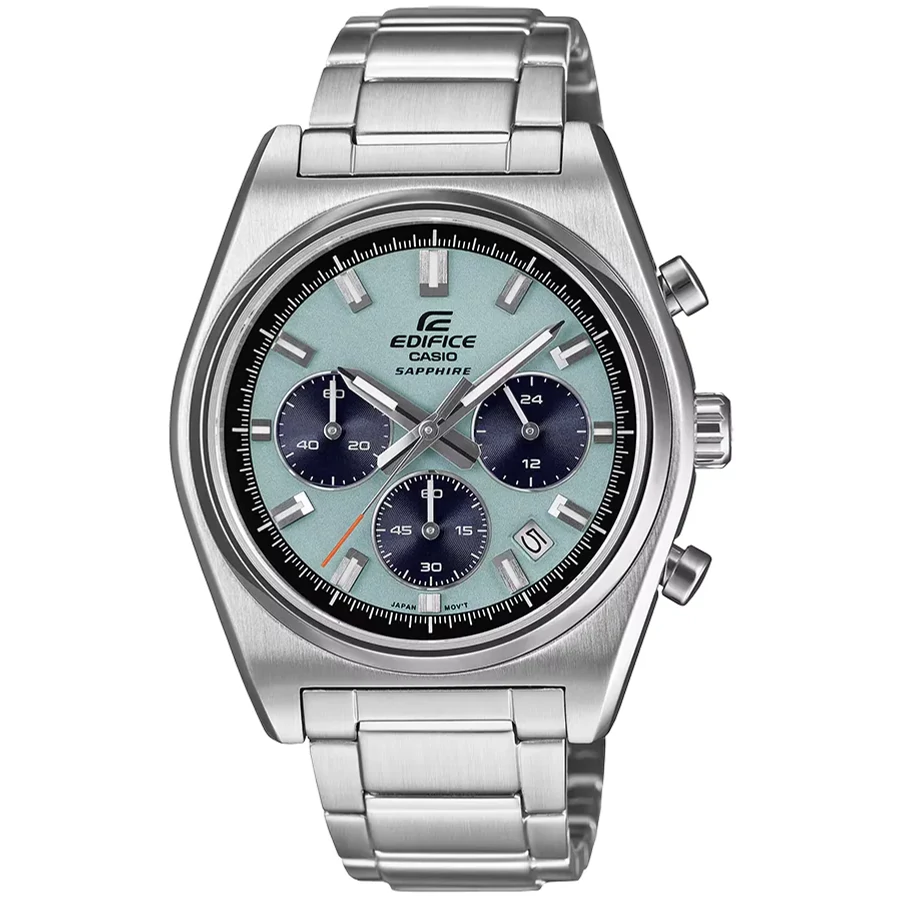 A CASIO EDIFICE EFB-730D-2B karóra 10 BAR nyomásig fokozottan vízálló, ezüstszínű nemesacél tokkal, fokozottan karcálló zafír kristályüveggel, menetes hátlappal, ezüstszínű tömör szemekből álló acélcsattal, nyitáskönnyített csatközéppel készül. Az órát pontos quartz óraszerkezet működteti, mely elemmel működik (kb. 3 év az elem várható élettartama). Az óráról a pontos idő mellett leolvasható a nap is. 1/1 másodperces mérési egységű stoppert használhat maximum 60 perc mérési idővel. A stopper részidős mérést is lehetővé tesz.