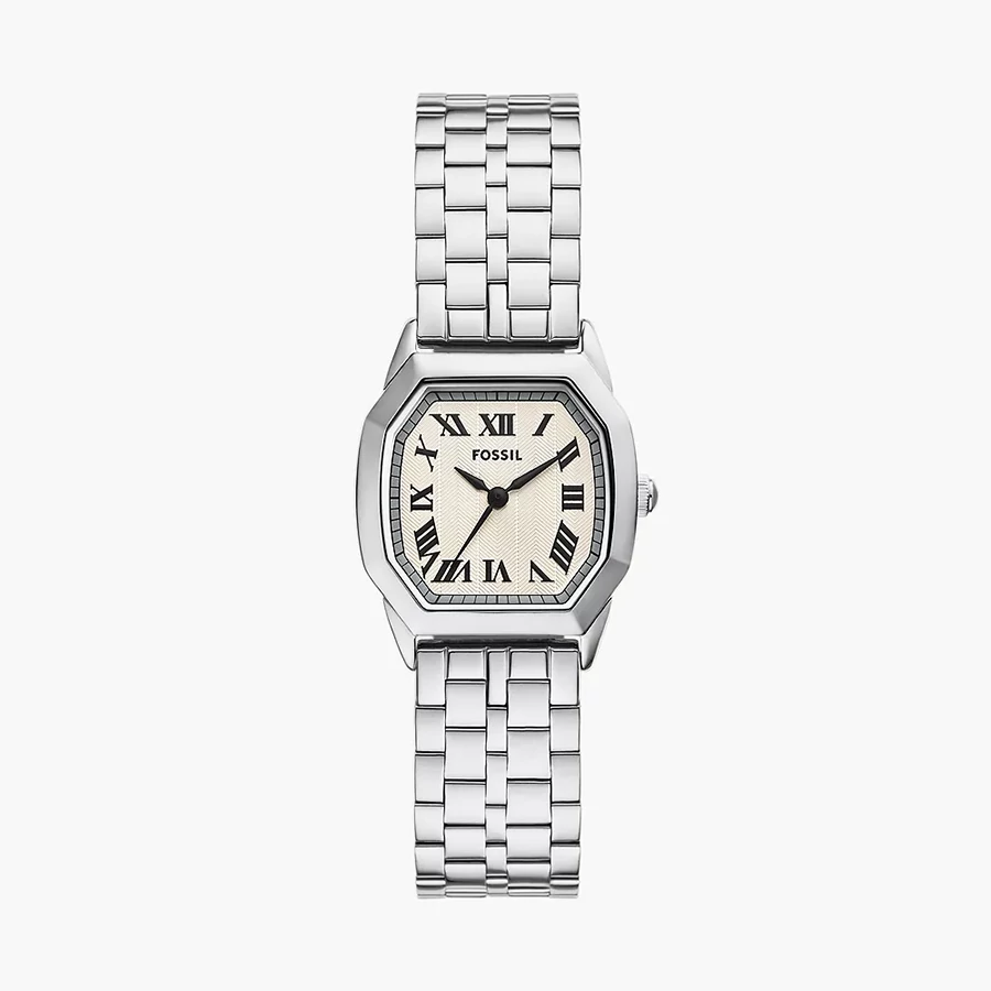 A FOSSIL HARLOW ES5363 karóra cseppálló, ezüstszínű nemesacél tokkal, edzett kristályüveggel, ezüstszínű acélcsattal, nyitáskönnyített csatközéppel készül. Az órát pontos quartz óraszerkezet működteti, mely elemmel működik.