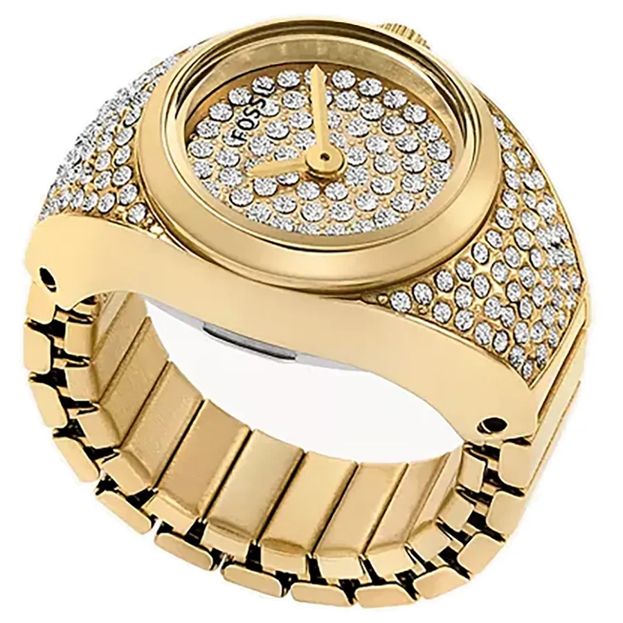 A FOSSIL WATCH RING ES5392 karóra 5 BAR nyomásig alapszinten vízálló, aranyszínű nemesacél tokkal, edzett kristályüveggel, aranyszínű acélcsattal, rugós csattal készül. Az órát pontos quartz óraszerkezet működteti, mely elemmel működik.