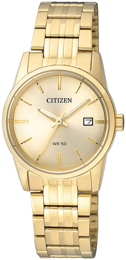 A CITIZEN ELEGANCE LADY EU6002-51P karóra 5 BAR nyomásig alapszinten vízálló, aranyszínű nemesacél tokkal, edzett kristályüveggel, aranyszínű acélcsattal, békazáras csatközéppel készül. Az órát pontos quartz óraszerkezet működteti, mely elemmel működik (kb. 3 év az elem várható élettartama). Az óráról a pontos idő mellett leolvasható a nap is.