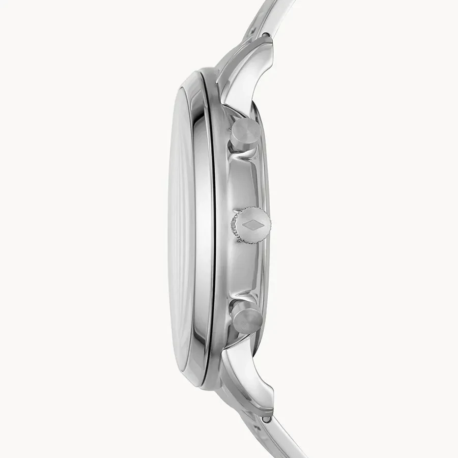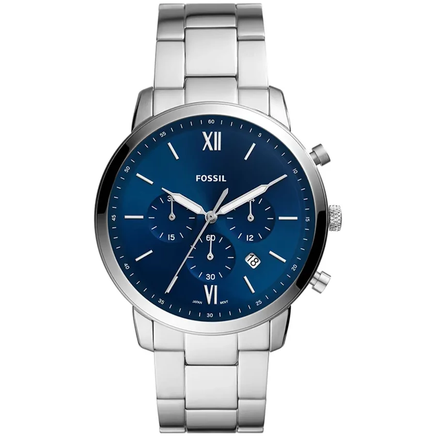 A FOSSIL NEUTRA FS5792 karóra 5 BAR nyomásig alapszinten vízálló, ezüstszínű nemesacél tokkal, edzett kristályüveggel, ezüstszínű acélcsattal, nyitáskönnyített csatközéppel készül. Az órát pontos quartz óraszerkezet működteti, mely elemmel működik. 1/1 másodperces mérési egységű stoppert használhat maximum 30 perc mérési idővel.