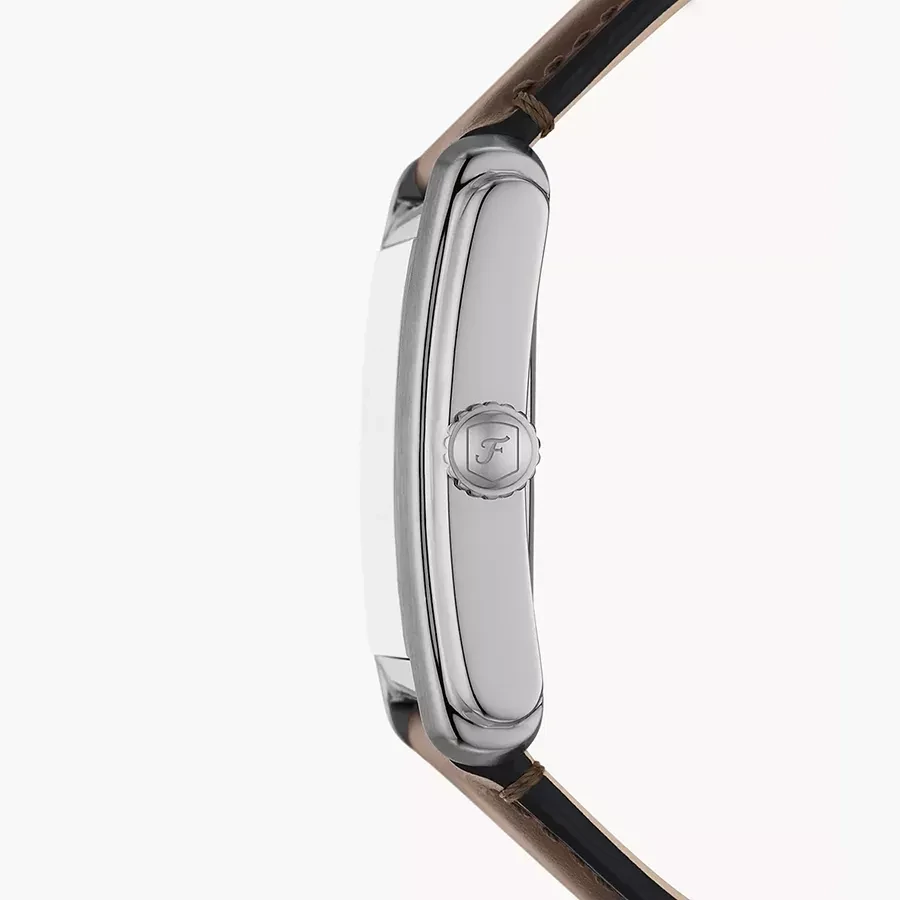 A FOSSIL CARRAWAY FS6012 karóra 5 BAR nyomásig alapszinten vízálló, ezüstszínű nemesacél tokkal, domború edzett kristályüveggel, barna színű valódi bőrszíjjal készül. Az órát pontos quartz óraszerkezet működteti, mely elemmel működik.