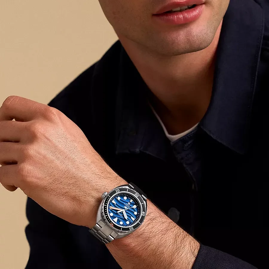 A FOSSIL BREAKER FS6064 karóra 20 BAR nyomásig fokozottan vízálló, ezüstszínű nemesacél tokkal, edzett kristályüveggel, búvár lünettával, menetes hátlappal, ezüstszínű acélcsattal, nyitáskönnyített csatközéppel készül. Az órát pontos quartz óraszerkezet működteti, mely elemmel működik. Az óráról a pontos idő mellett leolvasható a nap is.