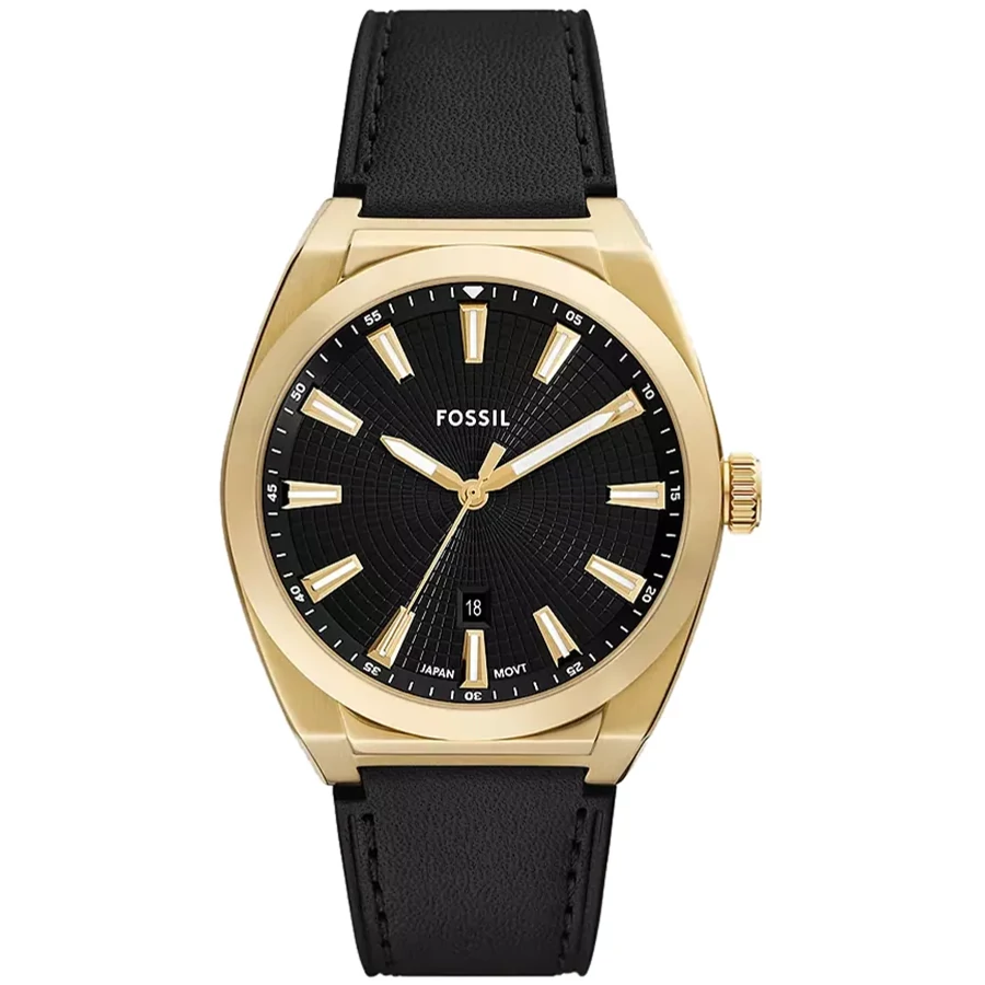 A FOSSIL EVERETT FS6089 karóra 5 BAR nyomásig alapszinten vízálló, aranyszínű nemesacél tokkal, edzett kristályüveggel, fekete színű valódi bőrszíjjal készül. Az órát pontos quartz óraszerkezet működteti, mely elemmel működik. Az óráról a pontos idő mellett leolvasható a nap is.