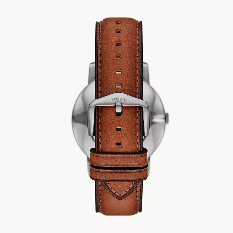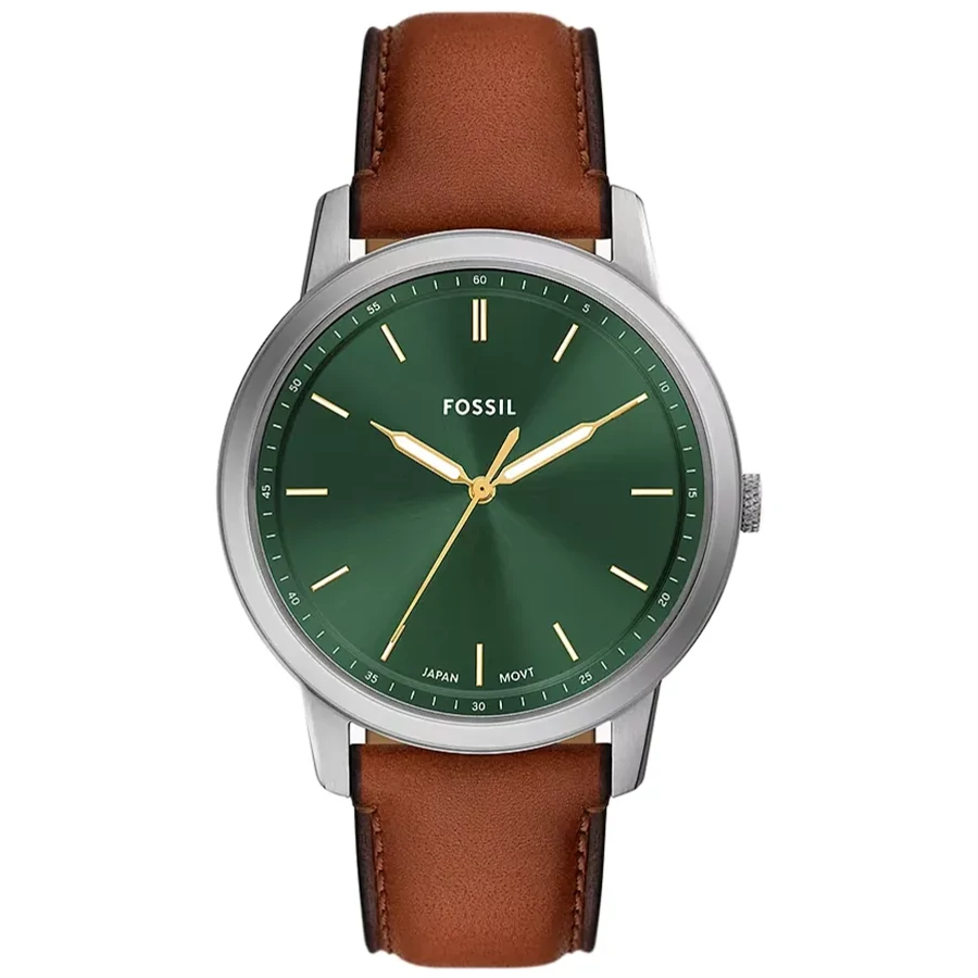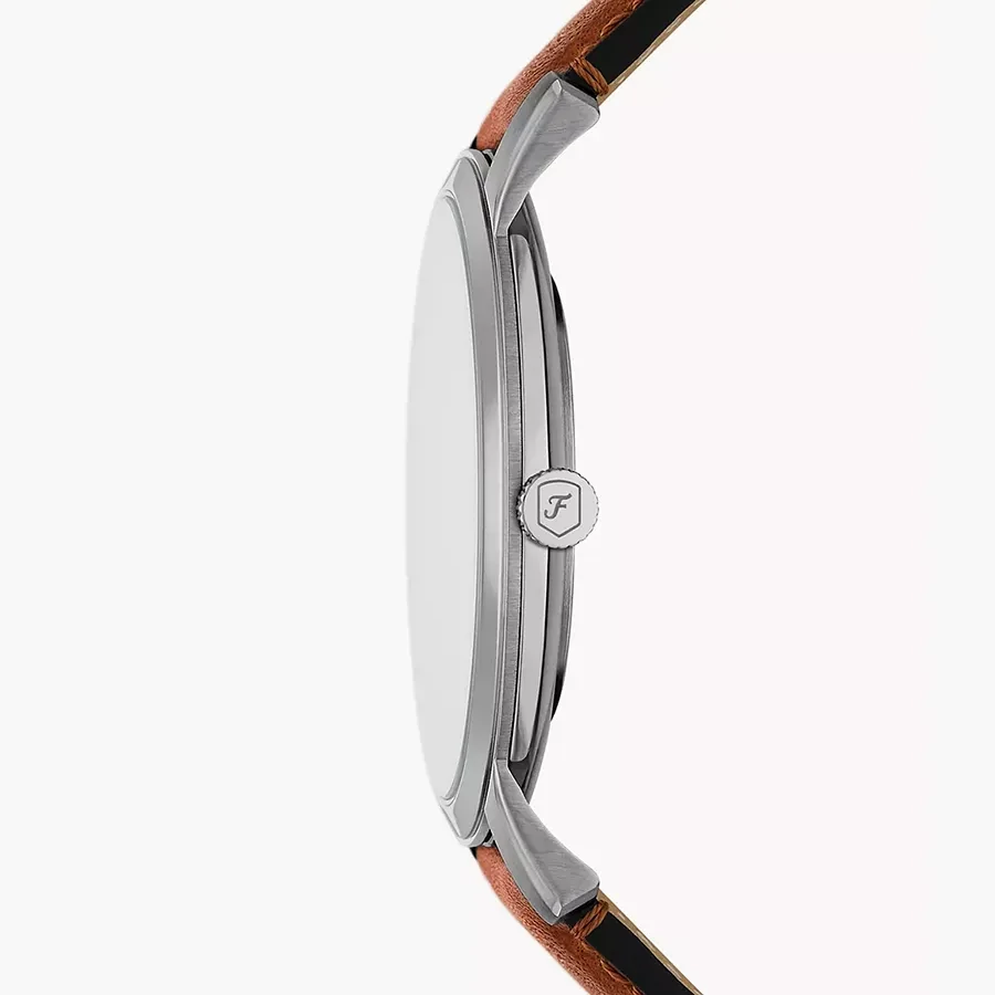 A FOSSIL MINIMALIST FS6094 karóra 5 BAR nyomásig alapszinten vízálló, ezüstszínű nemesacél tokkal, edzett kristályüveggel, barna színű valódi bőrszíjjal készül. Az órát pontos quartz óraszerkezet működteti, mely elemmel működik.