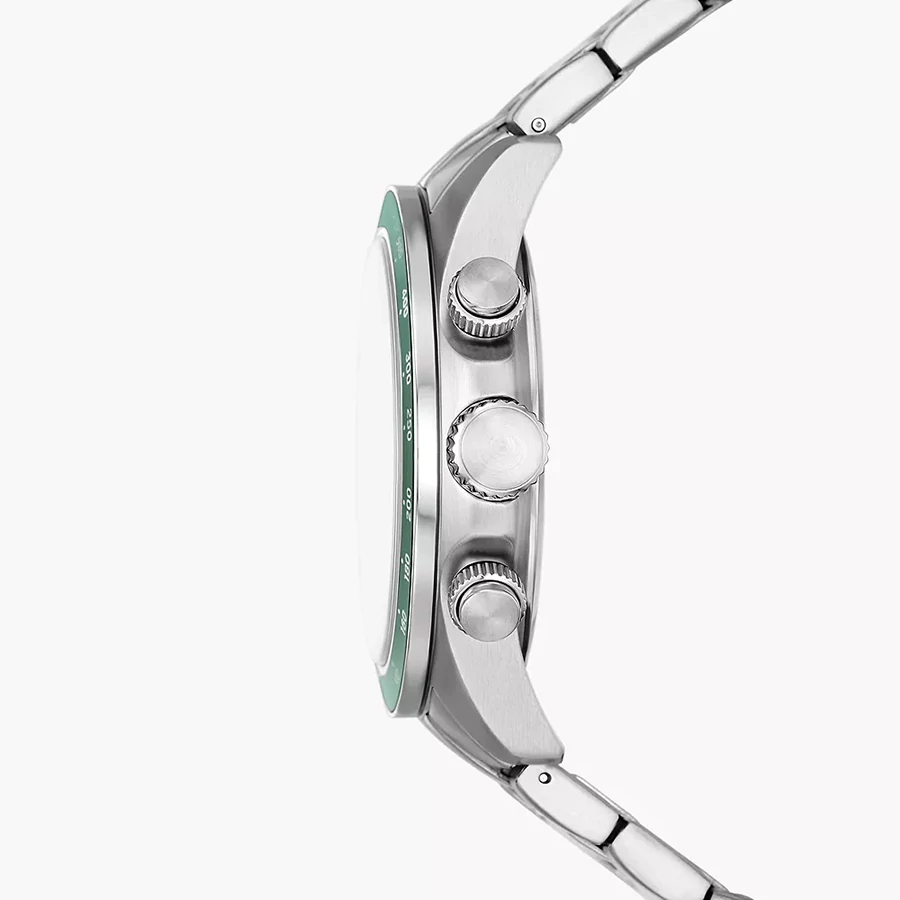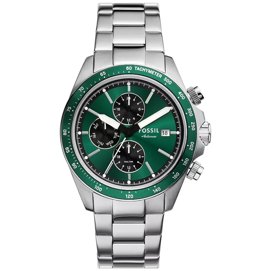 A FOSSIL AUTOCROSS DUAL TIME FS6127 karóra 5 BAR nyomásig alapszinten vízálló, ezüstszínű nemesacél tokkal, edzett kristályüveggel, ezüstszínű acélcsattal, nyitáskönnyített csatközéppel készül. Az órát pontos quartz óraszerkezet működteti, mely elemmel működik. Az óráról a pontos idő mellett leolvasható a nap is. Egy a pontos időtől független időzóna ideje is leolvasható az óráról (DUAL TIME).