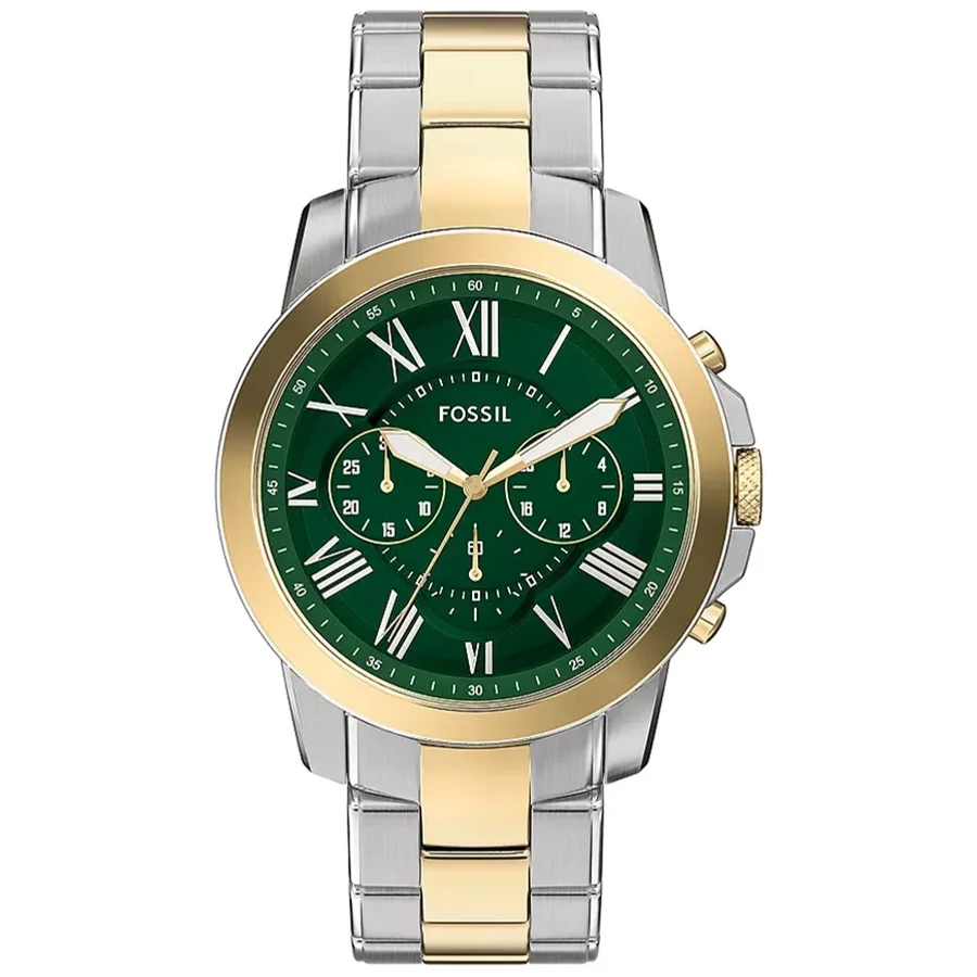 A FOSSIL DRESS GRANT STAINLESS STEEL FS6131 karóra 5 BAR nyomásig alapszinten vízálló, bicolor ( többszínű ) nemesacél tokkal, domború edzett kristályüveggel, menetes hátlappal, bicolor ( többszínű ) acélcsattal, nyitáskönnyített csatközéppel készül. Az órát pontos quartz óraszerkezet működteti, mely elemmel működik. 1/1 másodperces mérési egységű stoppert használhat maximum 30 perc mérési idővel.