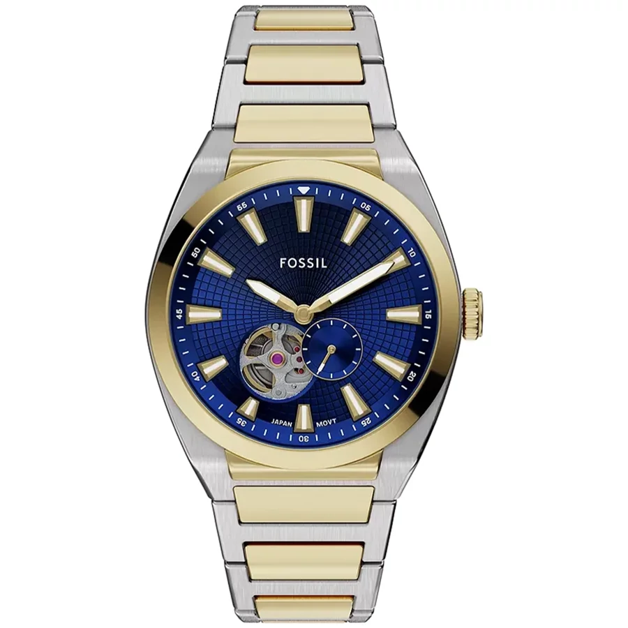 A FOSSIL EVERETT AUTOMATIC ME3275 karóra 5 BAR nyomásig alapszinten vízálló, bicolor ( többszínű ) nemesacél tokkal, edzett kristályüveggel, átlátszó hátlappal, bicolor ( többszínű ) acélcsattal, nyitáskönnyített csatközéppel készül. A mechanikus szerkezetet egy rugó működteti, melyet a kéz mozgása húz fel automatikusan. A megbízható működés eléréséhez kb. 8 óra aktív mozgásra van szükség.