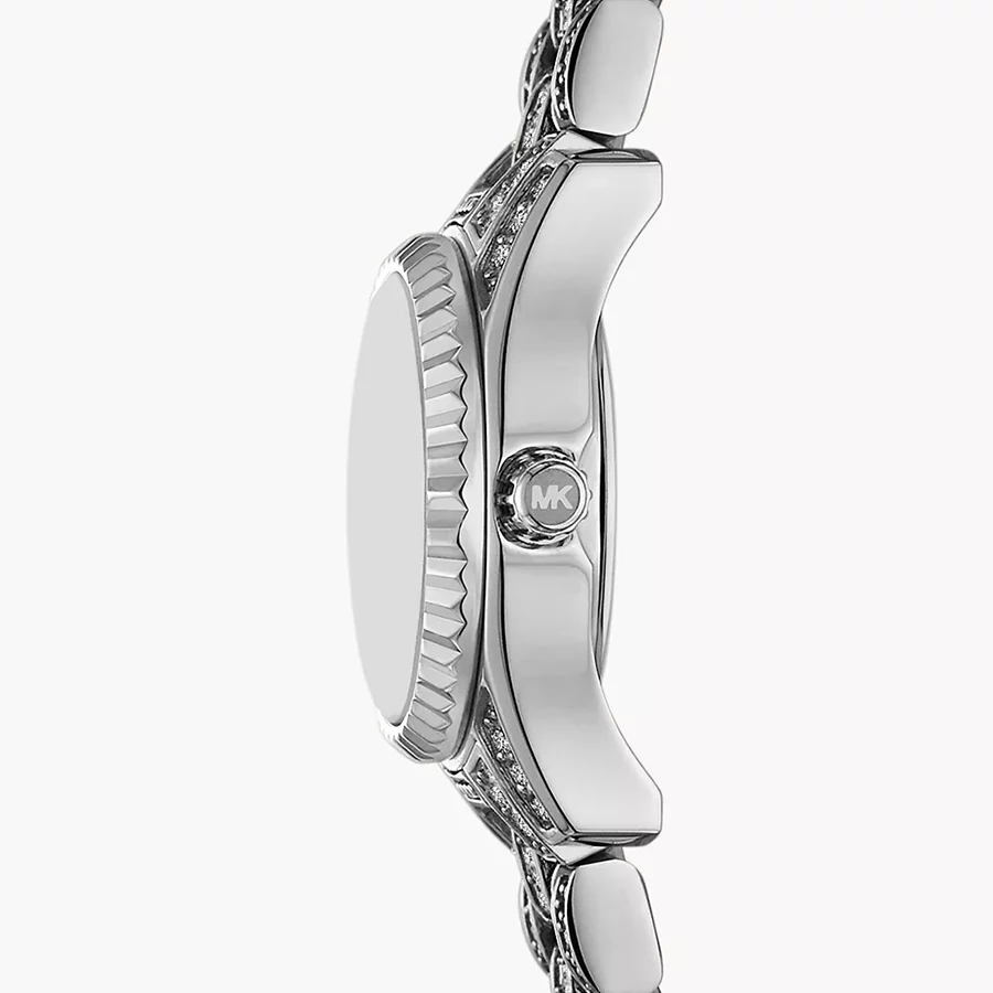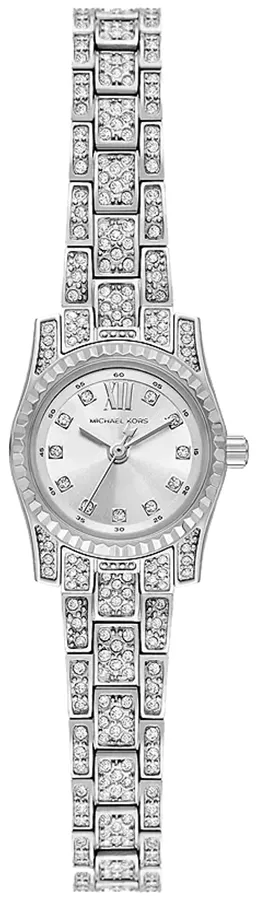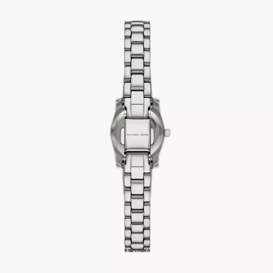 A MICHAEL KORS MINI LEXINGTON MK4864 karóra 5 BAR nyomásig alapszinten vízálló, ezüstszínű nemesacél tokkal, edzett kristályüveggel, ezüstszínű tömör szemekből álló acélcsattal, nyitáskönnyített csatközéppel készül. Az órát pontos quartz óraszerkezet működteti, mely elemmel működik.