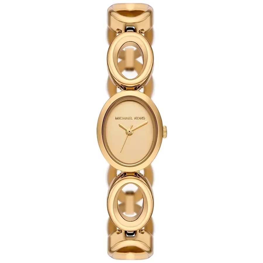 A MICHAEL KORS MAUDE MK4957 karóra cseppálló, aranyszínű nemesacél tokkal, edzett kristályüveggel, aranyszínű tömör szemekből álló acélcsattal, nyitáskönnyített csatközéppel készül. Az órát pontos quartz óraszerkezet működteti, mely elemmel működik.