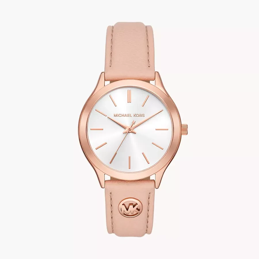 A MICHAEL KORS RUNWAY MK7467 karóra 5 BAR nyomásig alapszinten vízálló, rozé ( rózsa arany ) színű műanyag tokkal, edzett kristályüveggel, rózsaszinű valódi bőrszíjjal készül. Az órát pontos quartz óraszerkezet működteti, mely elemmel működik.