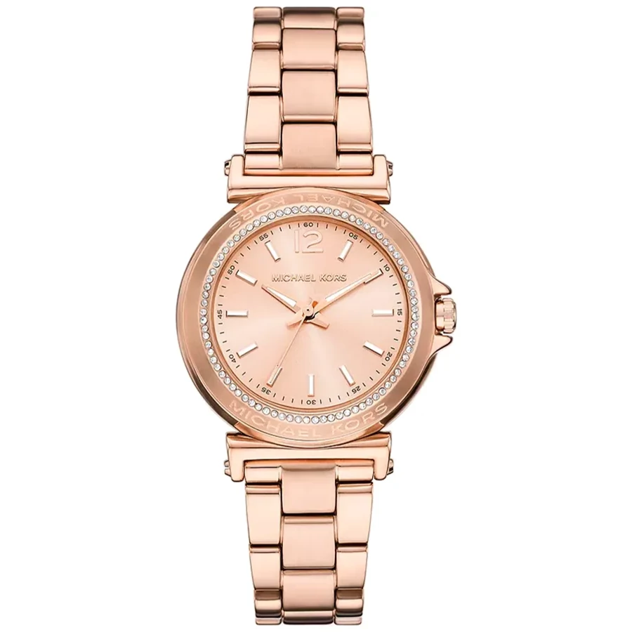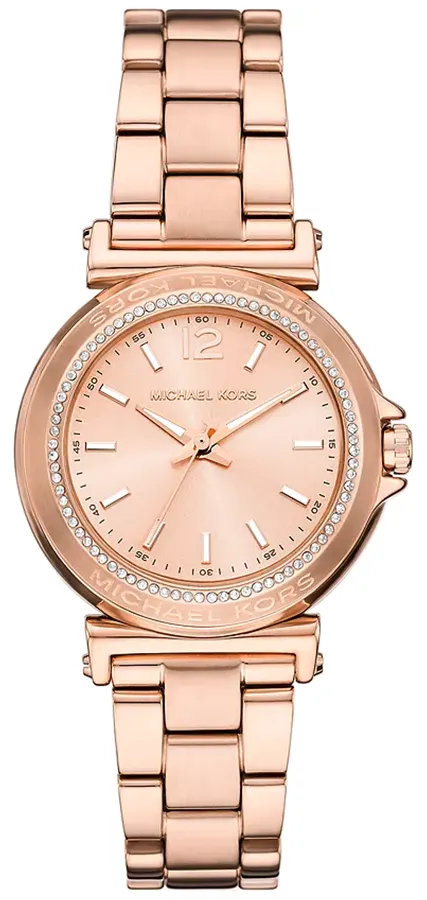 A MICHAEL KORS MAREN MK7491 karóra 5 BAR nyomásig alapszinten vízálló, rozé ( rózsa arany ) színű nemesacél tokkal, edzett kristályüveggel, rozé ( rózsa arany ) színű tömör szemekből álló acélcsattal, nyitáskönnyített csatközéppel készül. Az órát pontos quartz óraszerkezet működteti, mely elemmel működik.