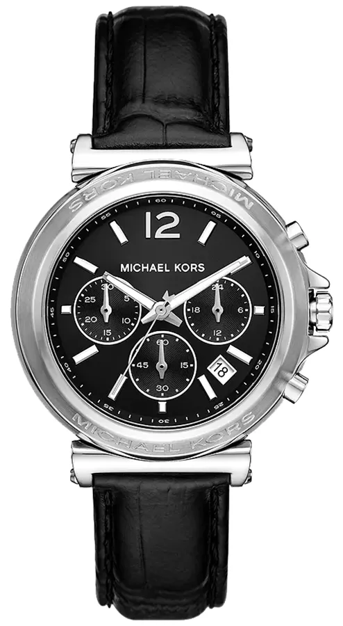 A MICHAEL KORS MAREN MK7499 karóra 5 BAR nyomásig alapszinten vízálló, ezüstszínű nemesacél tokkal, edzett kristályüveggel, fekete színű valódi bőrszíjjal készül. Az órát pontos quartz óraszerkezet működteti, mely elemmel működik. Az óráról a pontos idő mellett leolvasható a nap is. 1/1 másodperces mérési egységű stoppert használhat maximum 30 perc mérési idővel.