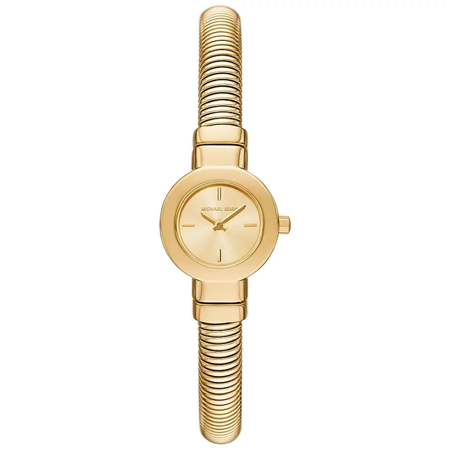 A MICHAEL KORS GRAMERCY MK7527 karóra 5 BAR nyomásig alapszinten vízálló, aranyszínű nemesacél tokkal, edzett kristályüveggel, menetes hátlappal, aranyszínű tömör szemekből álló acélcsattal, nyitáskönnyített csatközéppel készül. Az órát pontos quartz óraszerkezet működteti, mely elemmel működik. Az óráról a pontos idő mellett leolvasható a nap is.