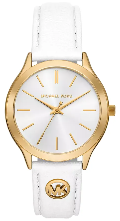 A MICHAEL KORS RUNWAY MK7544 karóra 5 BAR nyomásig alapszinten vízálló, aranyszínű nemesacél tokkal, edzett kristályüveggel, fehér színű valódi bőrszíjjal készül. Az órát pontos quartz óraszerkezet működteti, mely elemmel működik.