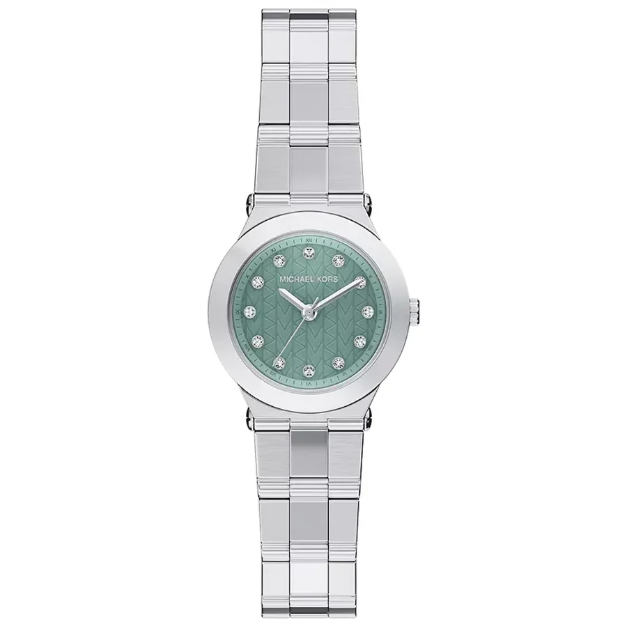 A MICHAEL KORS BILLIE MK7569 karóra 5 BAR nyomásig alapszinten vízálló, ezüstszínű nemesacél tokkal, edzett kristályüveggel, ezüstszínű tömör szemekből álló acélcsattal, nyitáskönnyített csatközéppel készül. Az órát pontos quartz óraszerkezet működteti, mely elemmel működik.