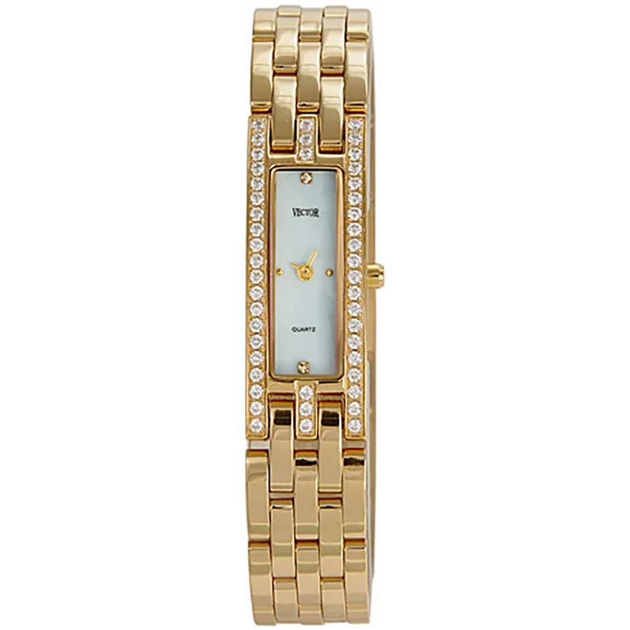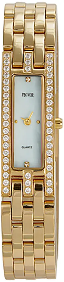 A VECTOR KIMBERLY V-1028 karóra cseppálló, aranyszínű nemesacél tokkal, domború edzett kristályüveggel, aranyszínű tömör szemekből álló acélcsattal, pillangózáras csatközéppel készül. Az órát pontos quartz óraszerkezet működteti, mely elemmel működik (kb. 3 év az elem várható élettartama).
