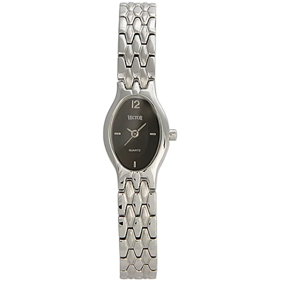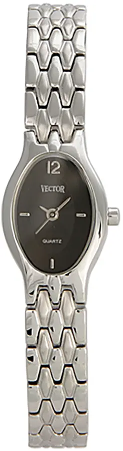 A VECTOR GREENFIELD V-990 karóra cseppálló, ezüstszínű nemesacél tokkal, edzett kristályüveggel, ezüstszínű tömör szemekből álló acélcsattal, ékszercsatolással készül. Az órát pontos quartz óraszerkezet működteti, mely elemmel működik.